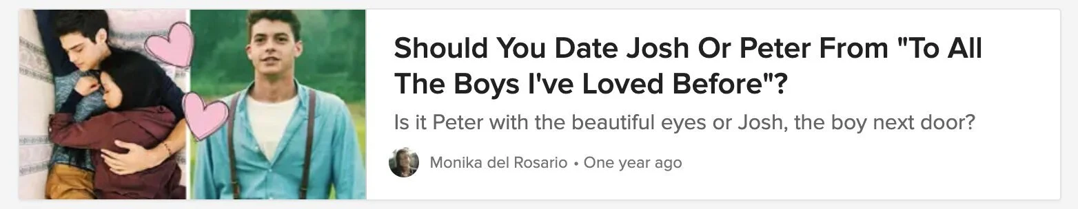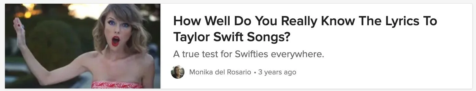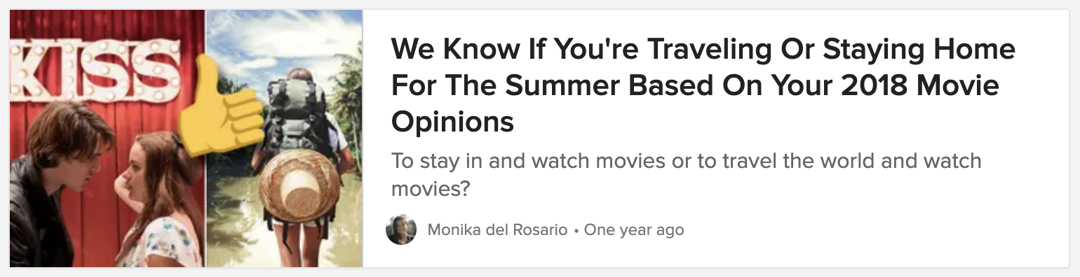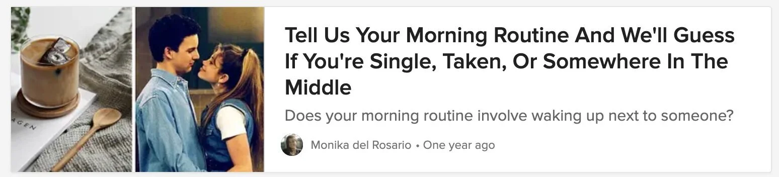 Since 2016, I have been creating content of BuzzFeed.com that has been vetted and promoted by BuzzFeed Staff. I have created multiple trending quizzes and listicles that have over 7 million views across all 50+ posts.