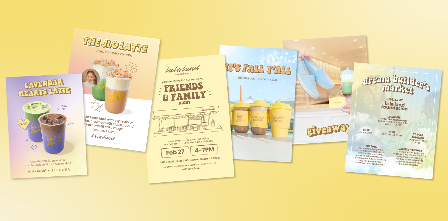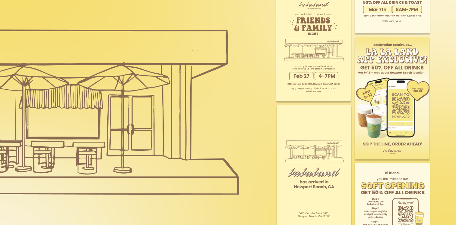 Drive foot traffic, seasonal campaign awareness, and customer engagement for La La Land Cafe through cohesive brand storytelling across in-store, digital, and merchandise touchpoints.